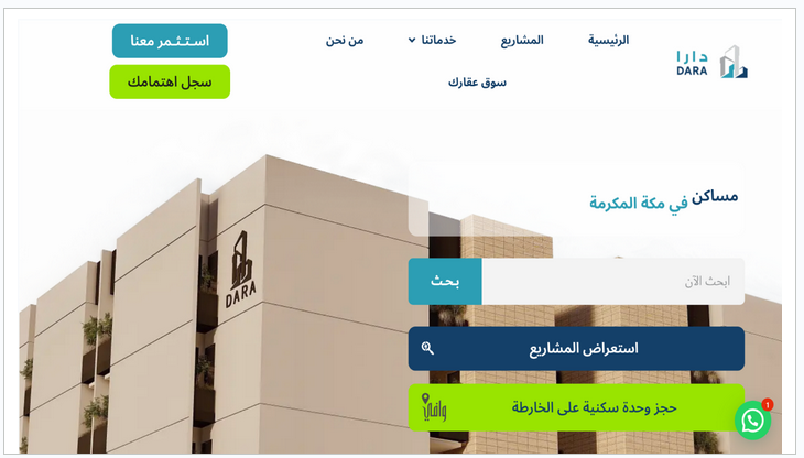 صفحات هبوط عقارية جاهزة ومخصّصة للمشاريع، مبنية للتحويل، مع خرائط مواقع، أسعار مبدئية، ونماذج حجز زيارة.